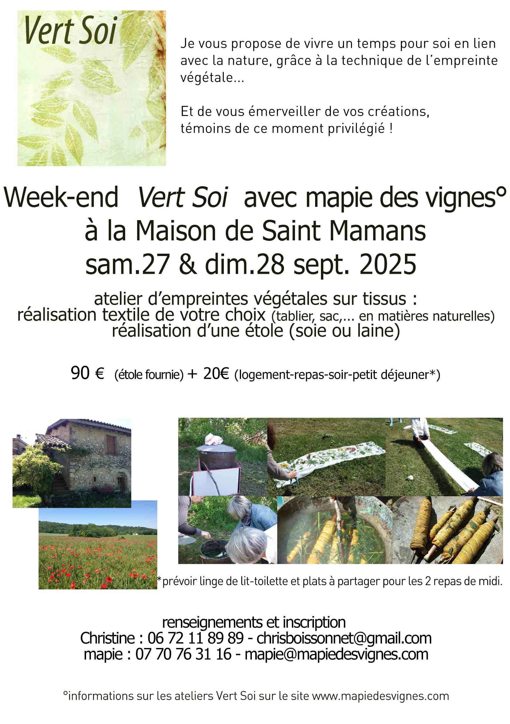 Durant ces 2 jours, l'idée est de créer un vêtement ou un objet textile sur lequel, vous allez pratiquer la technique de l'empreinte végétale. (vous pouvez aussi bien partir d'un vêtement existant à transformer). Bien sûr, une étole complètera la panoplie