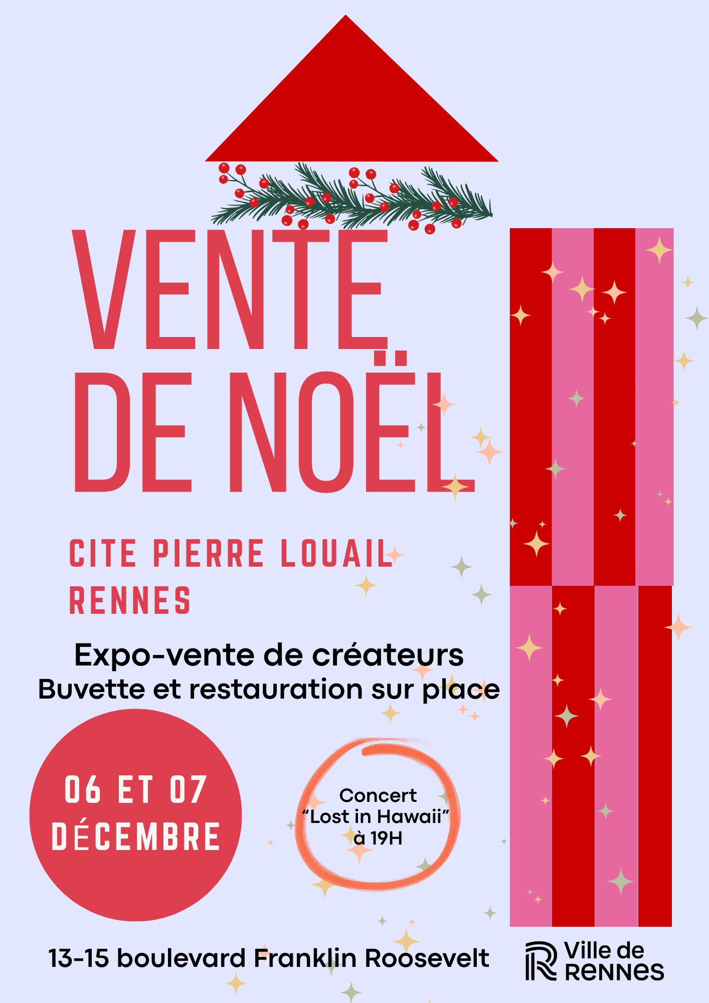 Vente de Noël Un week-end festif vous attend : une belle sélection de créateurs, un espace restauration tout le week-end avec @cuisinepositive , une buvette et un concert de "Lost in Hawaï " le samedi soir, du swing hawaïen des années 20 et 30. Cité Pierre Louail à Rennes 6 décembre: 10h - 19h, Concert à 19h 7 décembre: 10h - 18h