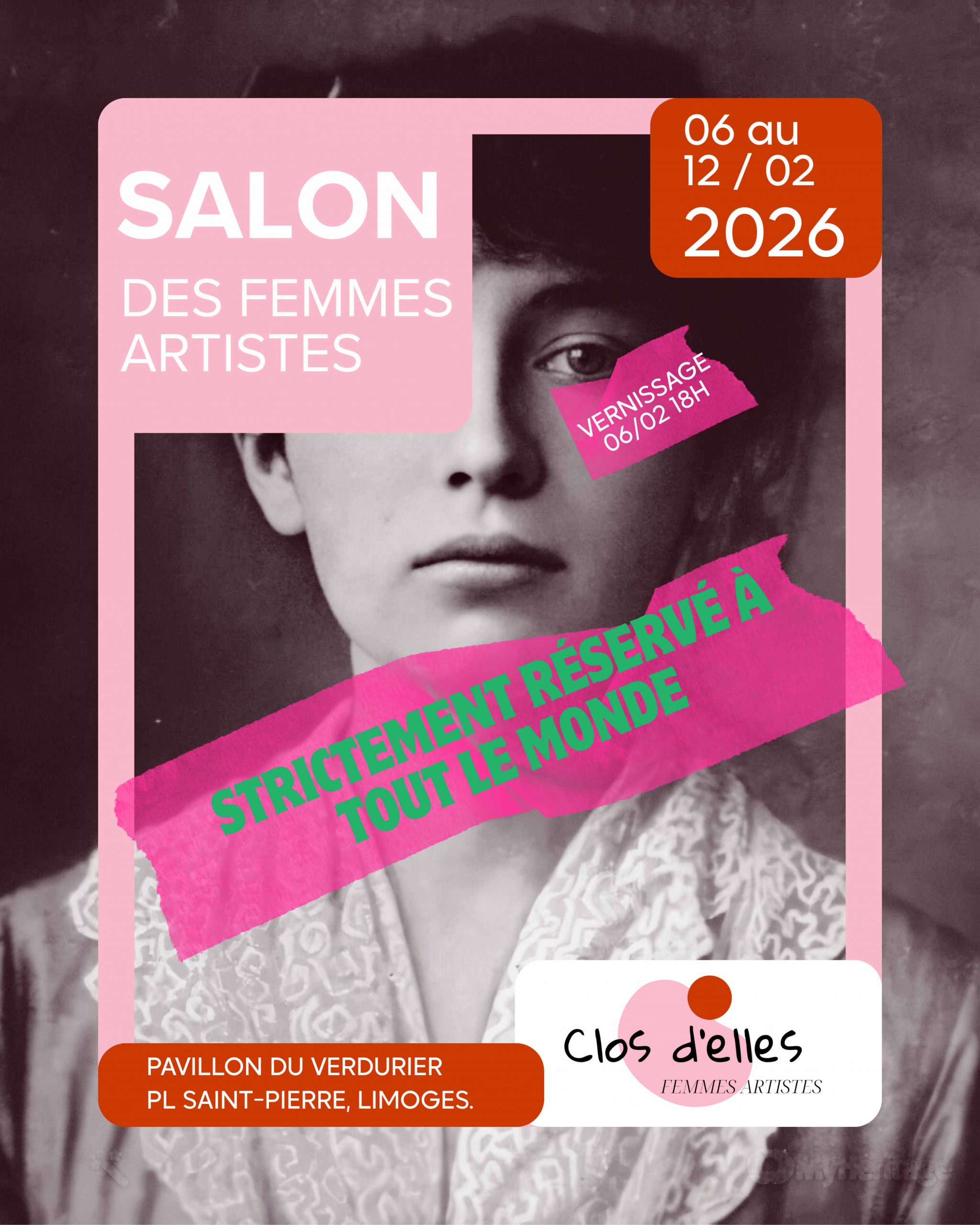 Avec sa troisième édition du salon des femmes artistes, Clos d’elles souhaite inscrire cette exposition / vente comme un rendez-vous clef de la scène limougeaude. Un salon 100% féminin où 26 créatrices seront mises à l’honneur avec une grande variété de techniques (céramique, peinture, photographie, sculpture, broderie, illustration...). La part belle sera faite aux liens en croisant des artistes de la grande région et plus. On y retrouvera en effet des représentantes de la Gironde, de la Haute Garonne, de la Charentes, de la Creuse, de la Corrèze, du Lot et Garonne, du Poitou-Charentes et de la Dordogne... Une émulsion de couleurs et propos riches et solidaires qui inviteront les spectateurs à un voyage au cœur de leurs univers.Infos ou billetterie : https://closdelles.wixsite.com/closdelles/projects-8