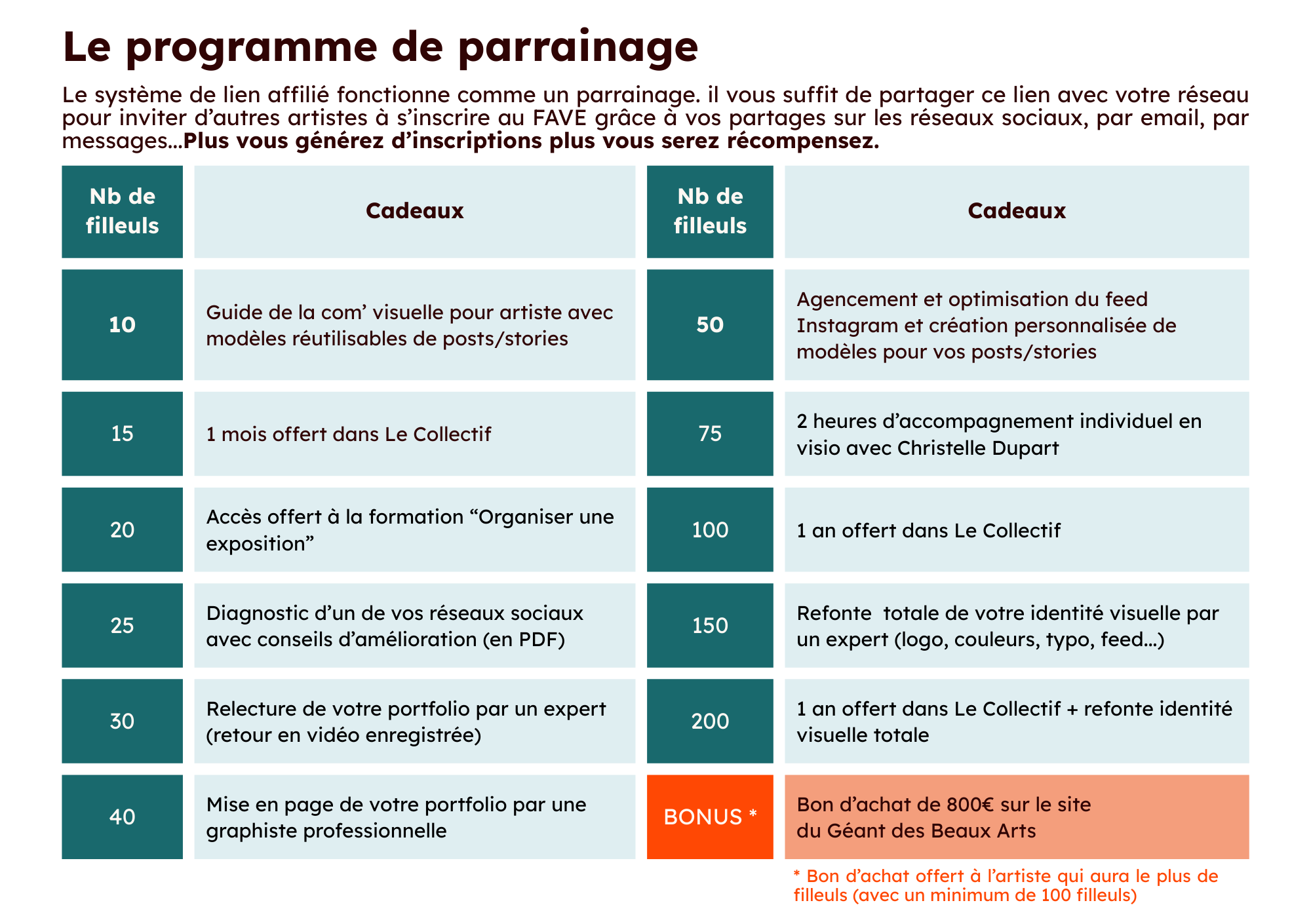 Gagnez des lots en parrainant des artistes de votre réseau
